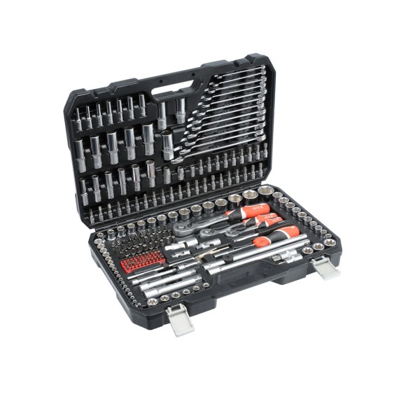 Dugókulcs készlet 216 részes 1/2 col: 10-32 mm, 1/4 col: 4-14 mm, 3/8 col: 10-19 mm CrV YATO