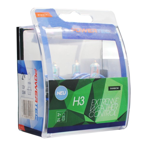 Powertec Extreme Weather Control H3 bulb 12V DUOInnovative bulbs with multi-coloured coating - the light colour adapts to the weather conditions.