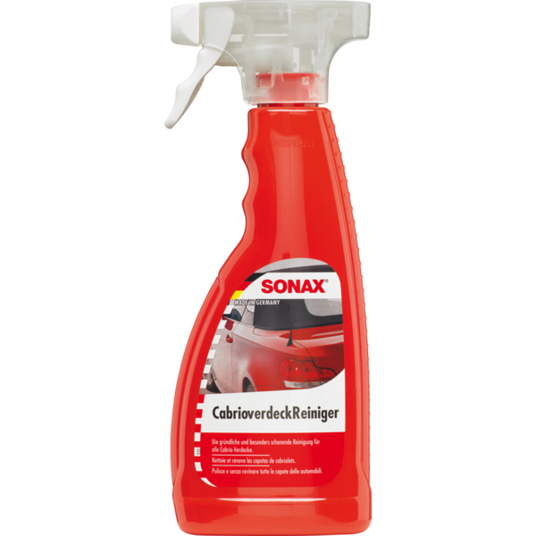 Textil és műanyag kabriótetők tisztításához kifejlesztett speciális tisztítószer. Még a legmakacsabb szennyeződéseket is gyorsan és alaposan eltávolítja. Az eredeti fényezést nem támadja meg.